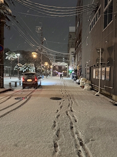 本日出勤です❗️ 一気に寒くなりました🥹❄️ 外に出たら雪が積もってて、、 四日市めっちゃ積もるびっくり😳❗️ もう耳当てとマフラーと手袋必須になってます🧣 名古屋で夜中の屋台ラーメン🍜🫶