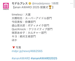 本日出勤です❗️ anan AWARD 2025 絶対王者部門て面白すぎる😂😂 高校生の時 好きな女優声優さんがanan表紙飾ってて 買って家に帰って飾ってたら お母さんに笑われた記憶😂笑 キヨのananはタンスにしまってます🥺❗️✨